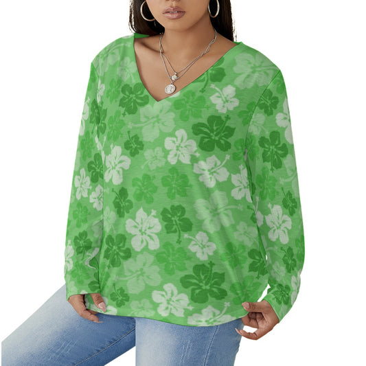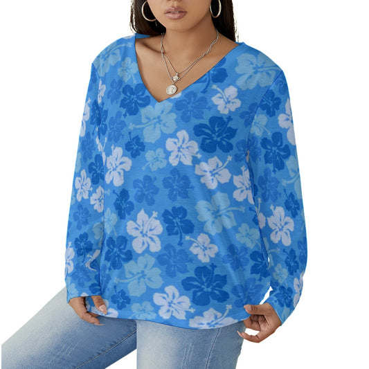 Women's Tropical Hawaiian Hibiscus Flowers V-neck T-shirt With Curved Hem(Plus Size)Regular price $100.00 CADRegular priceUnit price per$50.00 CADSale price $100.00 CAD