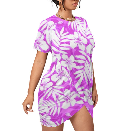 Purple Tropical Flowers Women’s Stacked Hem Dress With Short Sleeve (Plus Size)Regular price $93.00 CADRegular priceUnit price per$57.00 CADSale price $93.00 CAD