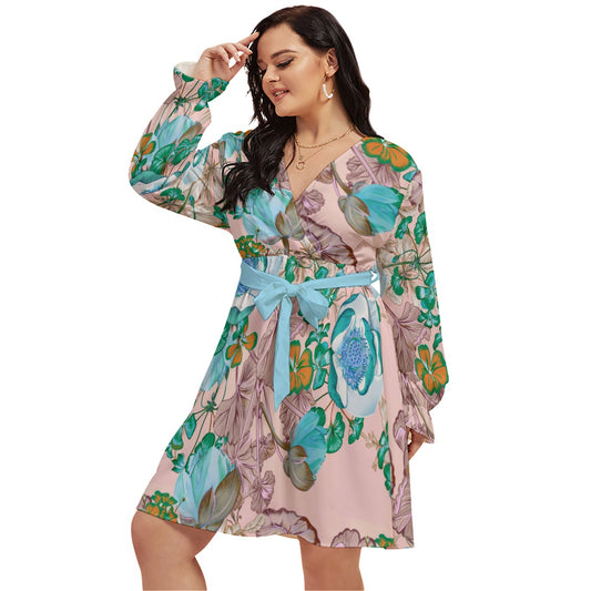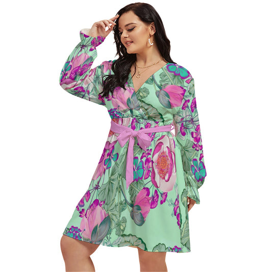 Beautiful Flowers Women's V-neck Dress With Waistband (Plus Size)Regular price $93.00 CADRegular priceUnit price per$63.00 CADSale price $93.00 CAD