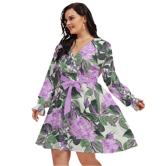 Beautiful Elegant Purple Roses Women's V-neck Dress With Waistband (Plus Size)Regular price $93.00 CADRegular priceUnit price per$70.00 CADSale price $93.00 CAD