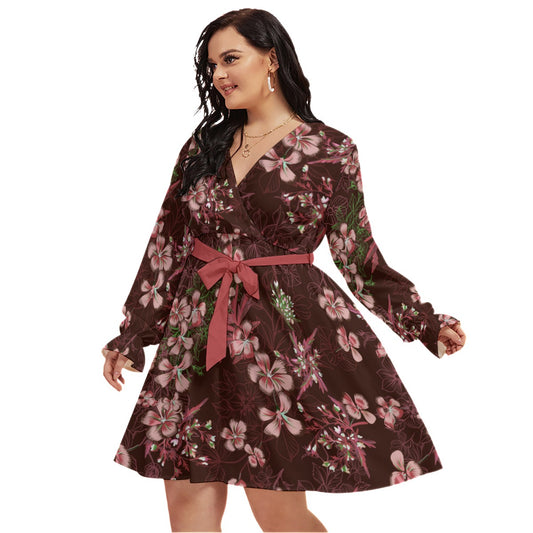 Light Brown Flowers Women's V-neck Dress With Waistband (Plus Size)Regular price $93.00 CADRegular priceUnit price per$70.00 CADSale price $93.00 CAD