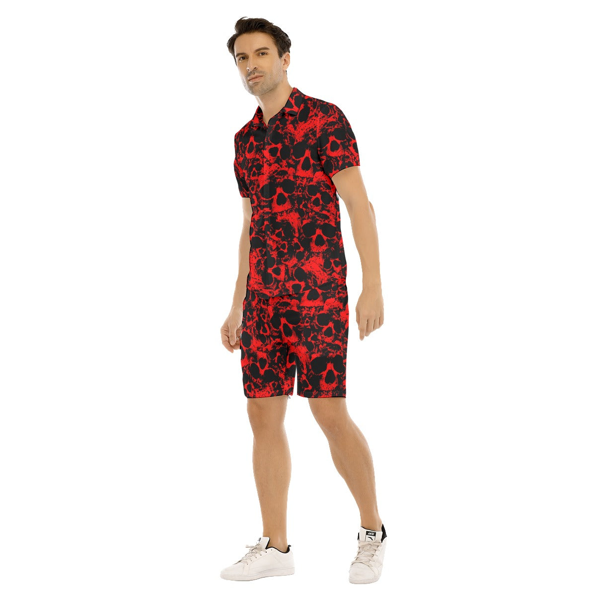 Men's Red Skull Gang Short Sleeve Shirt Sets