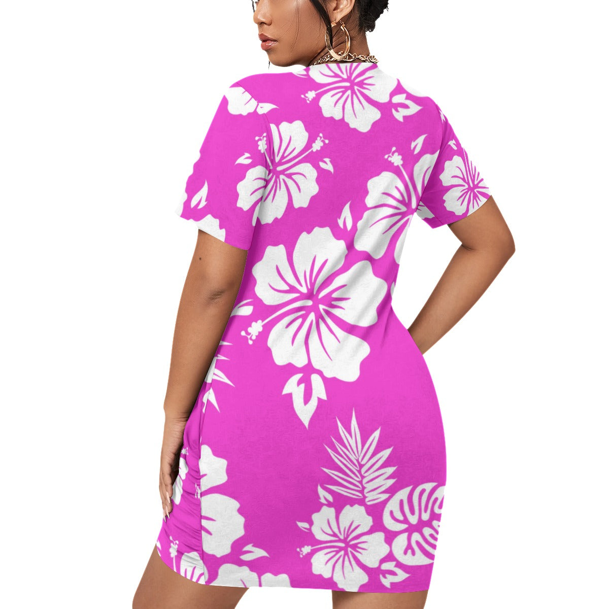 Pink Aloha Women’s Stacked Hem Dress With Short Sleeve (Plus Size)
