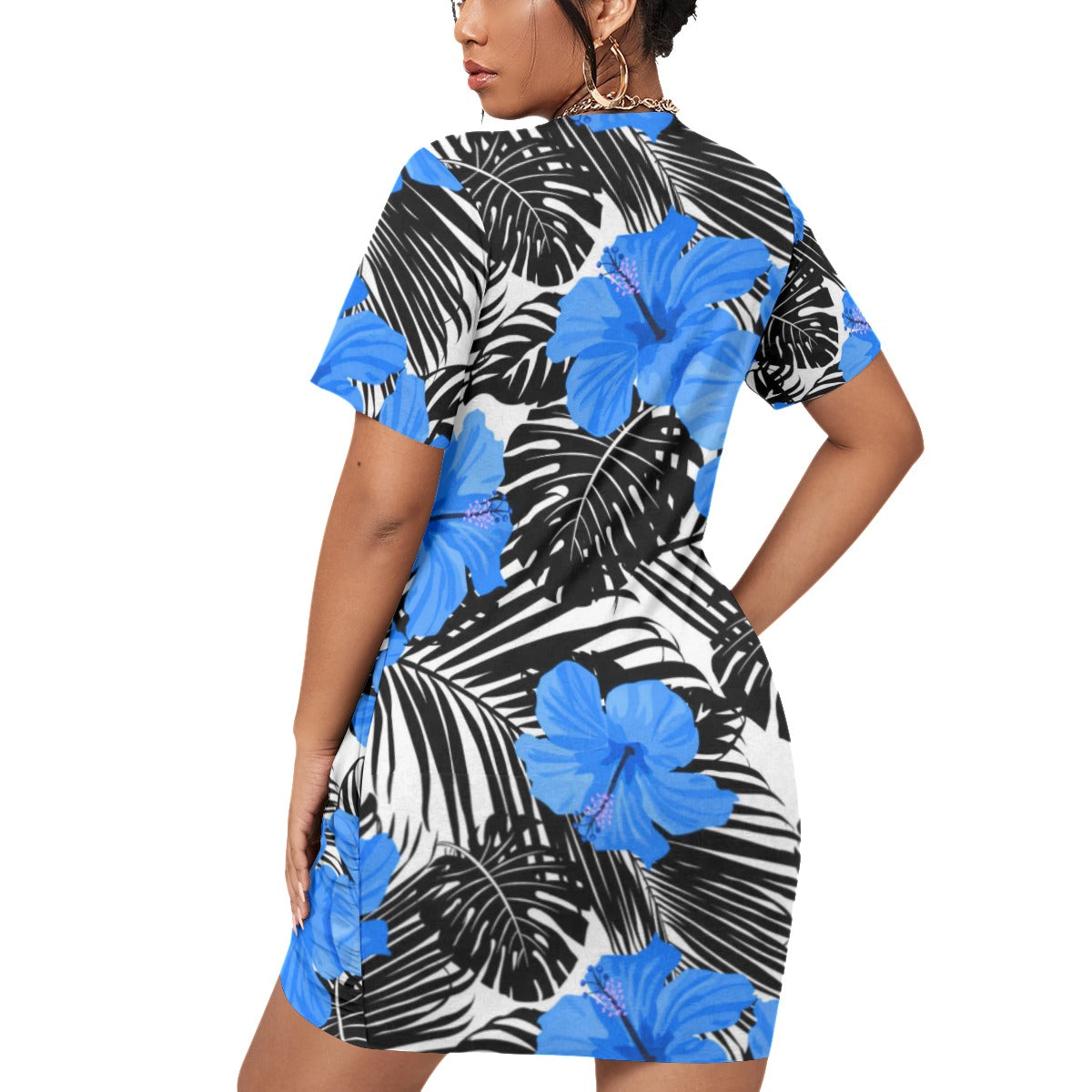 Tropic Flowers Women’s Stacked Hem Dress With Short Sleeve(Plus Size)