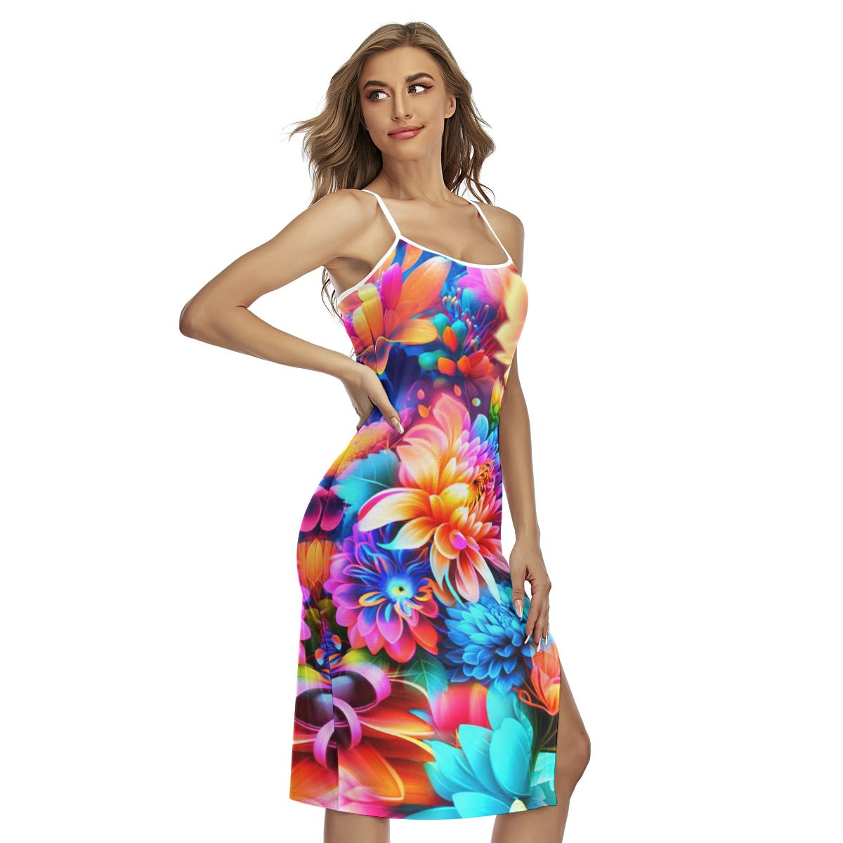 Women's Beautiful Flowers Back Cross Cami Dress