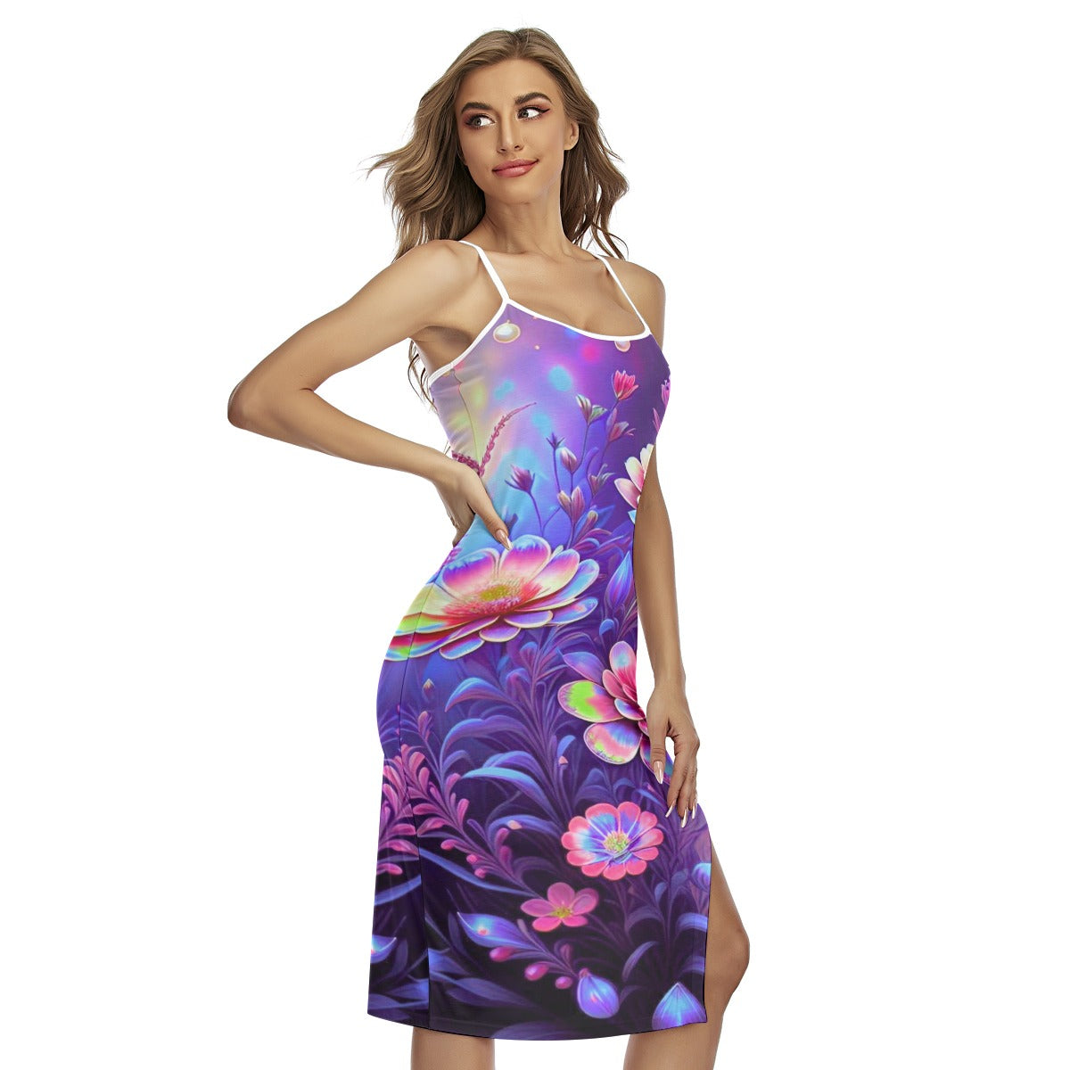 Women's Colorful Flowers Back Cross Cami Dress