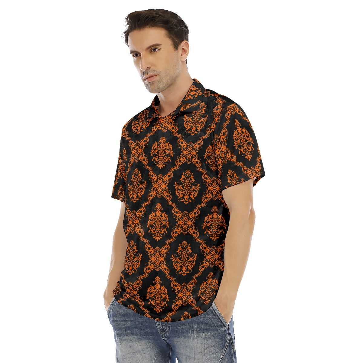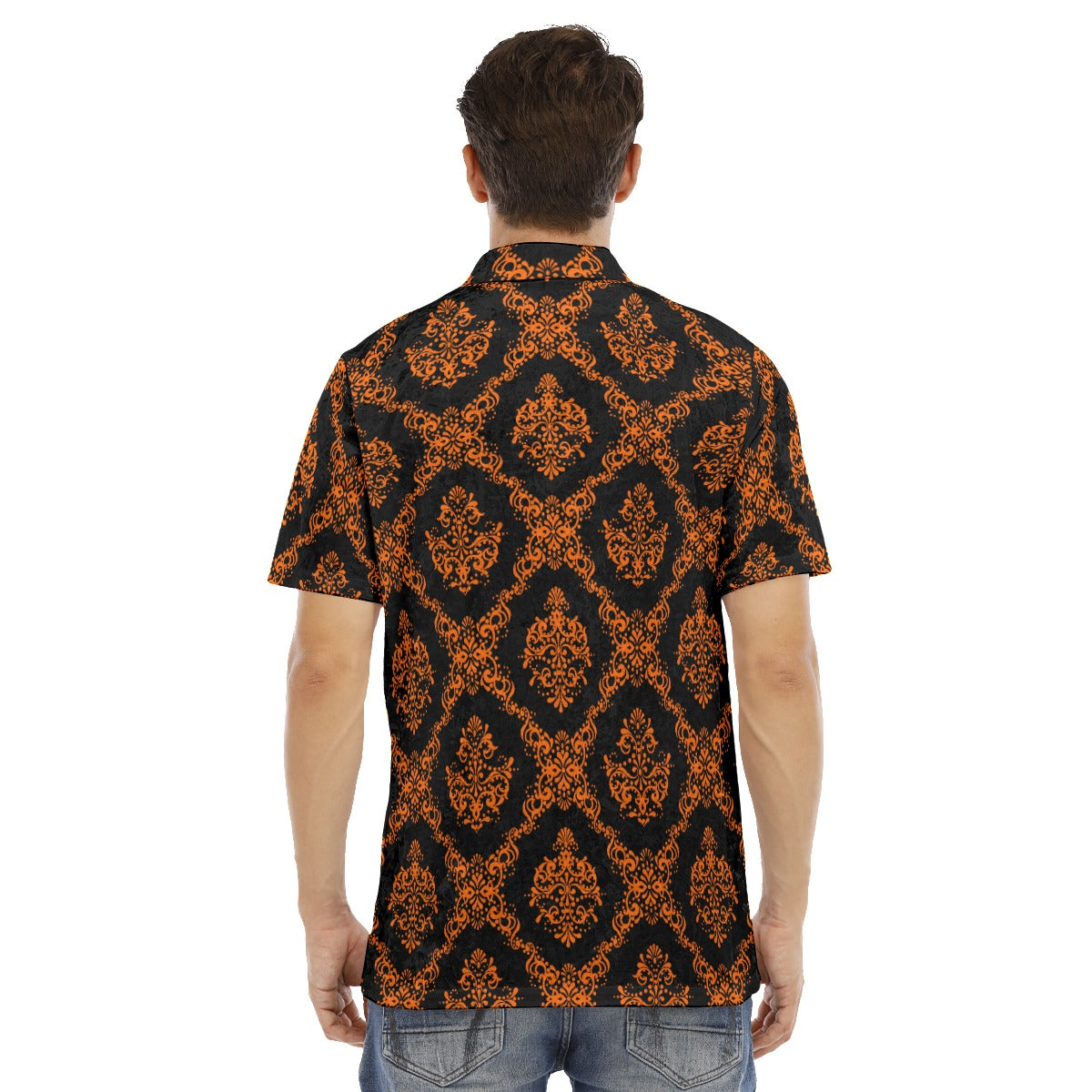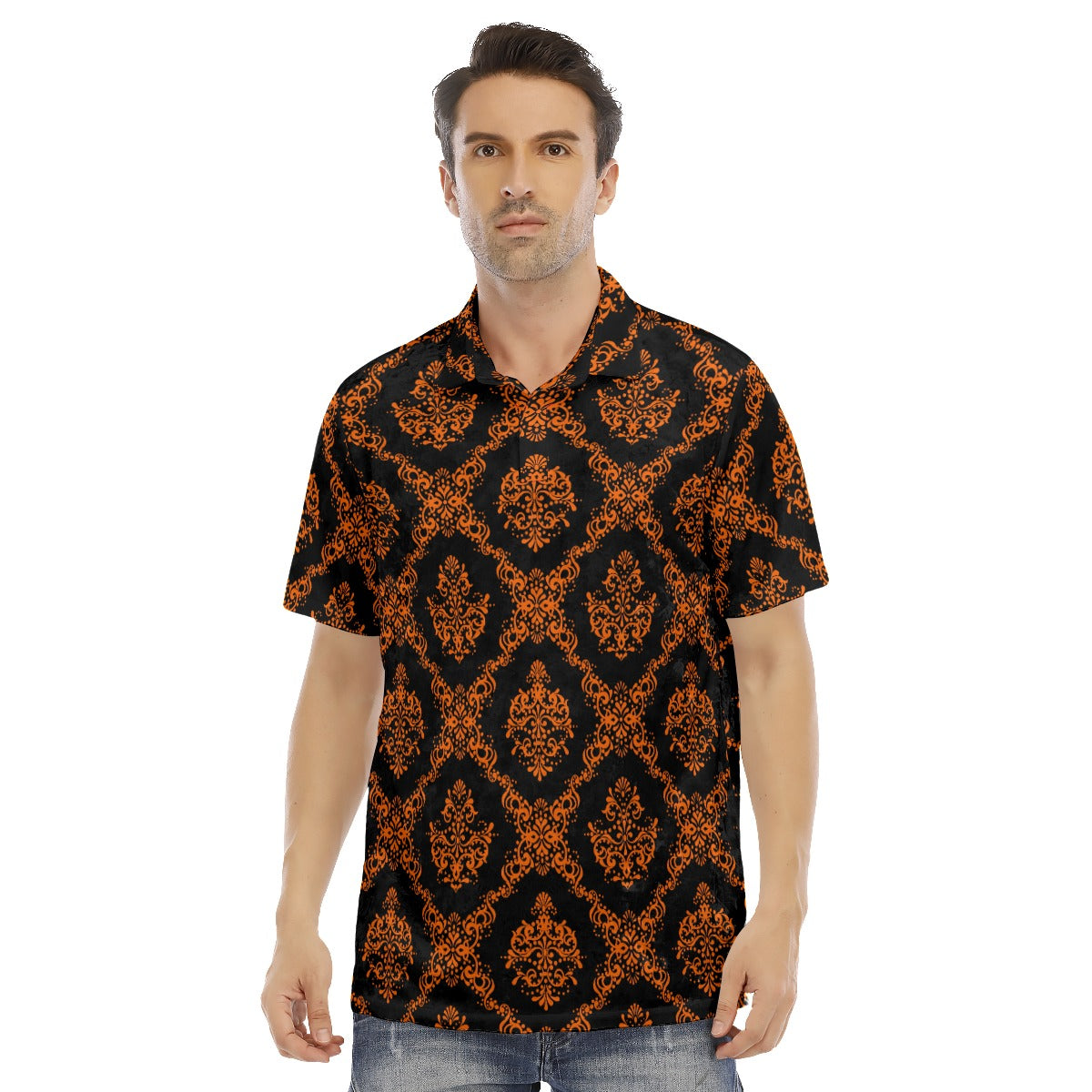 Orange & Black Ethnic Men's Polo Shirt | Velvet