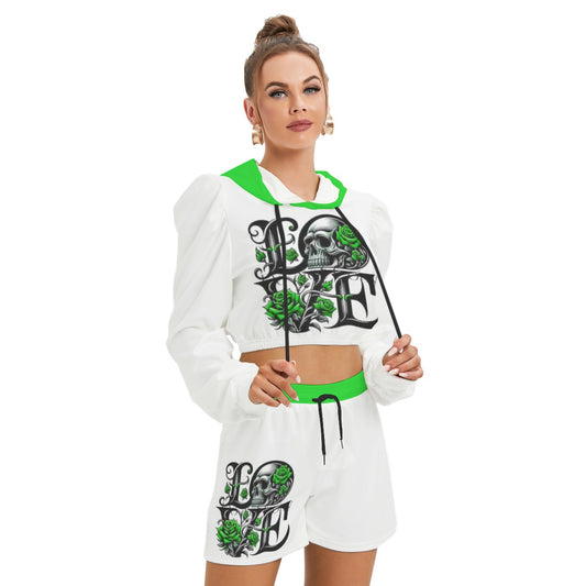 Love With Skull & Roses Women's Micro Fleece Hoodie And Shorts Set