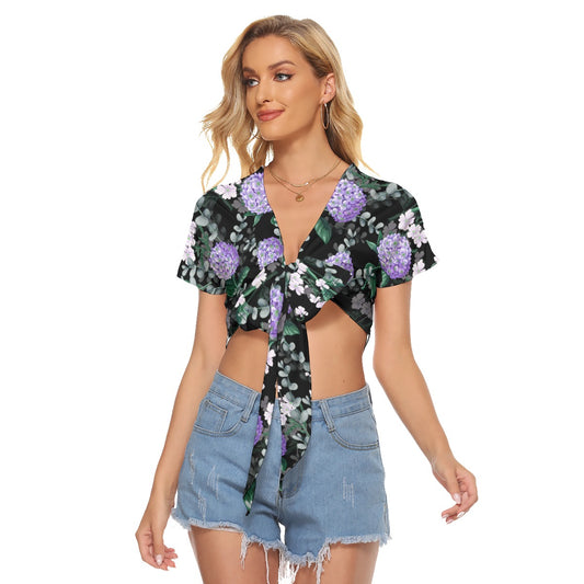 Purple Hydrangea Flowers Women's Bandage Crop Top