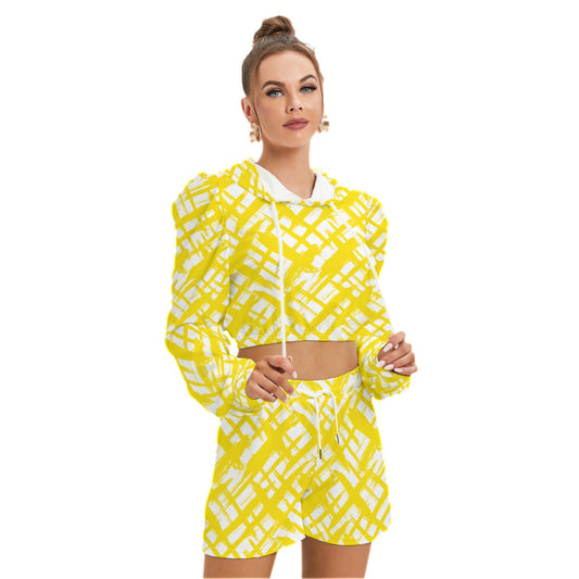 Yellow Stripes & Crosses Women's Micro Fleece Hoodie And Shorts Set