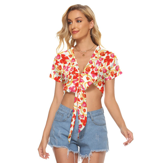 Red Hearts & Roses Women's Short Sleeve Cropped Top Shorts Suit