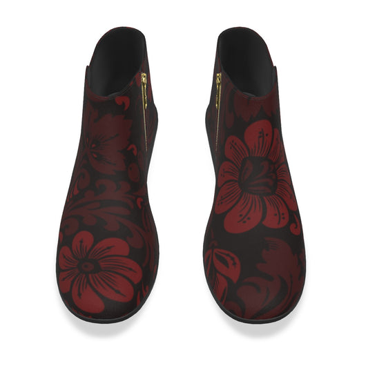 Red Flowers Women's V-neck Dress With Waistband (Plus Size)