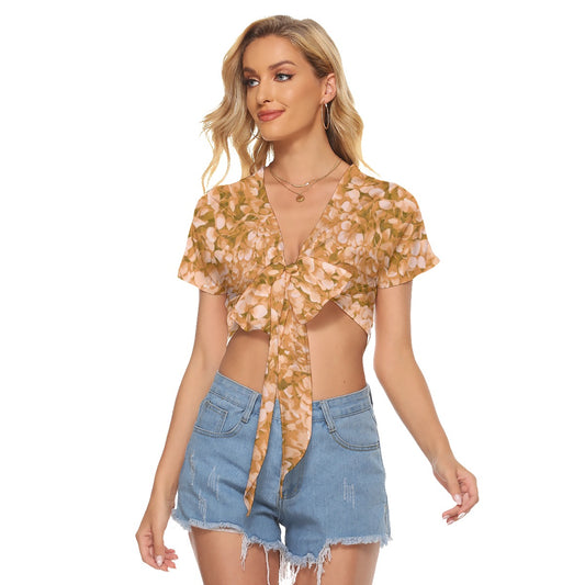 Orange & White Tropical Flowers Women's Short Sleeve Cropped Top Shorts Suit