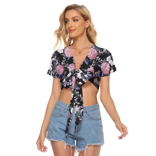 Pink Hydrangea Flowers Women's Bandage Crop Top