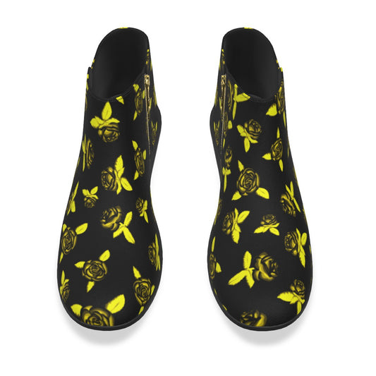 Black & Yellow Roses Women's Crop Hoodie Sports Sets