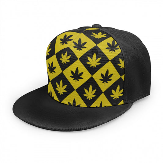 Black & Yellow Stoners Only Weed Leaf Checker Snap back