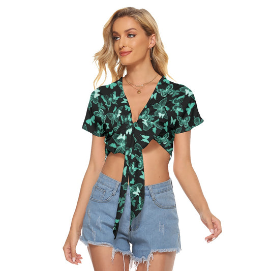 Black With Yellow Butterflies Women's Bandage Crop Top