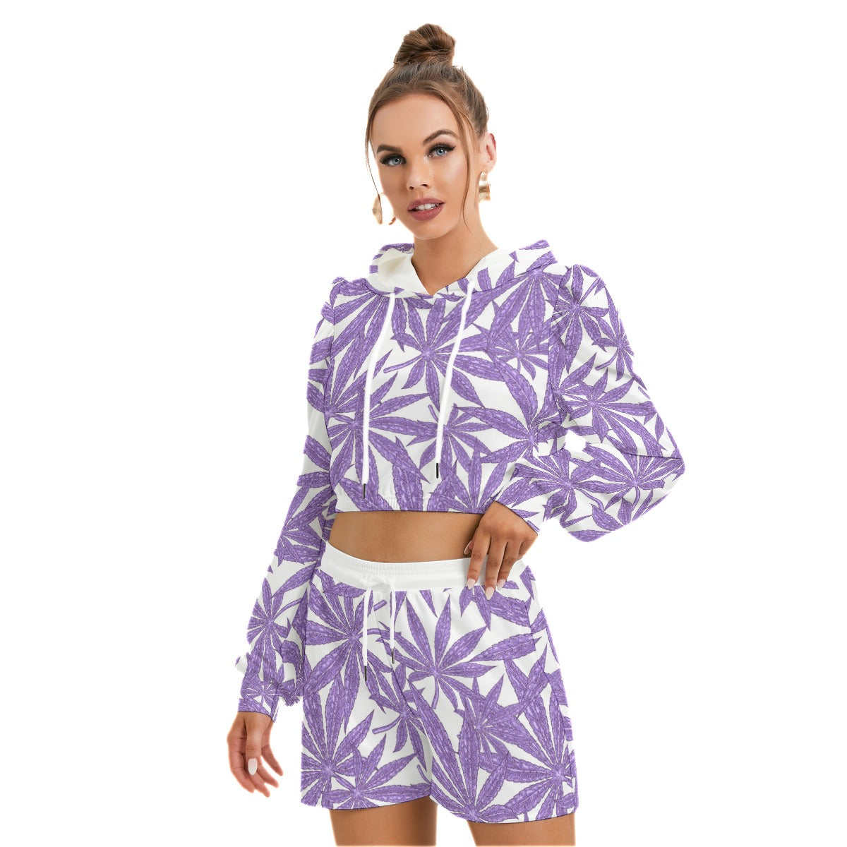 Cannabis Leaves Marijuana Women's Micro Fleece Hoodie And Shorts Set