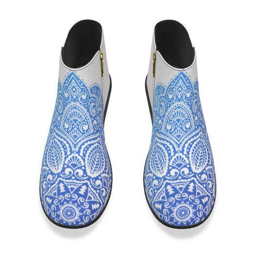 Beautiful Blue Flowers Women's Square Collar Cropped Top With Puff Sleeve