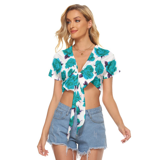 Sold outTeal Roses Women's Bandage Crop Top