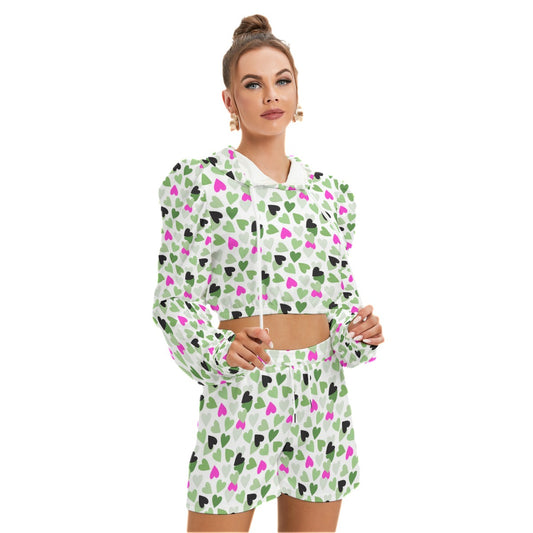 Colorful Hearts Women's Crop Hoodie Sports Sets