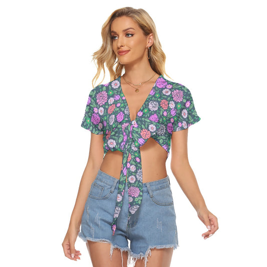 Cute Flowers Women's Wrap Hem Belted Halter Dress