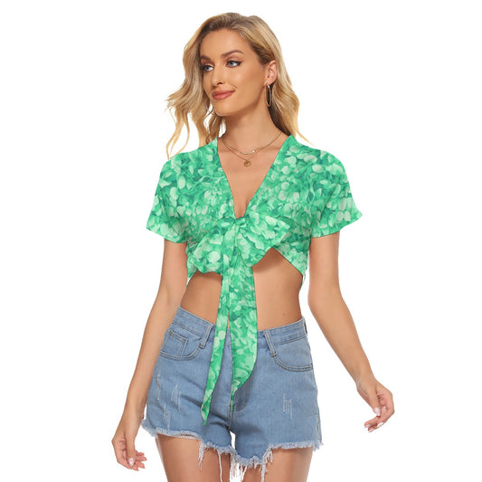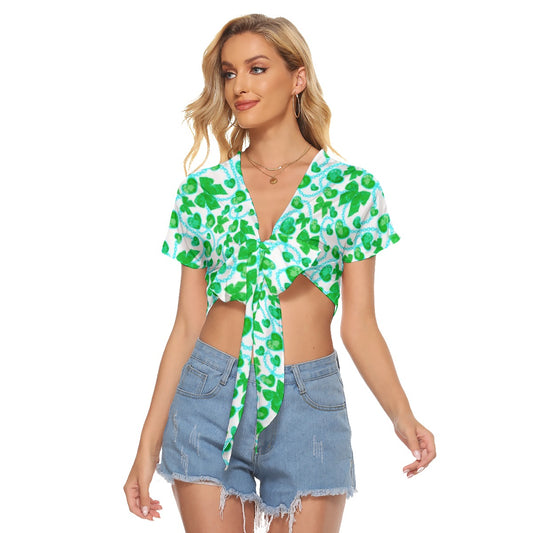 Green Hearts & Roses Women's Short Sleeve Cropped Top Shorts Suit