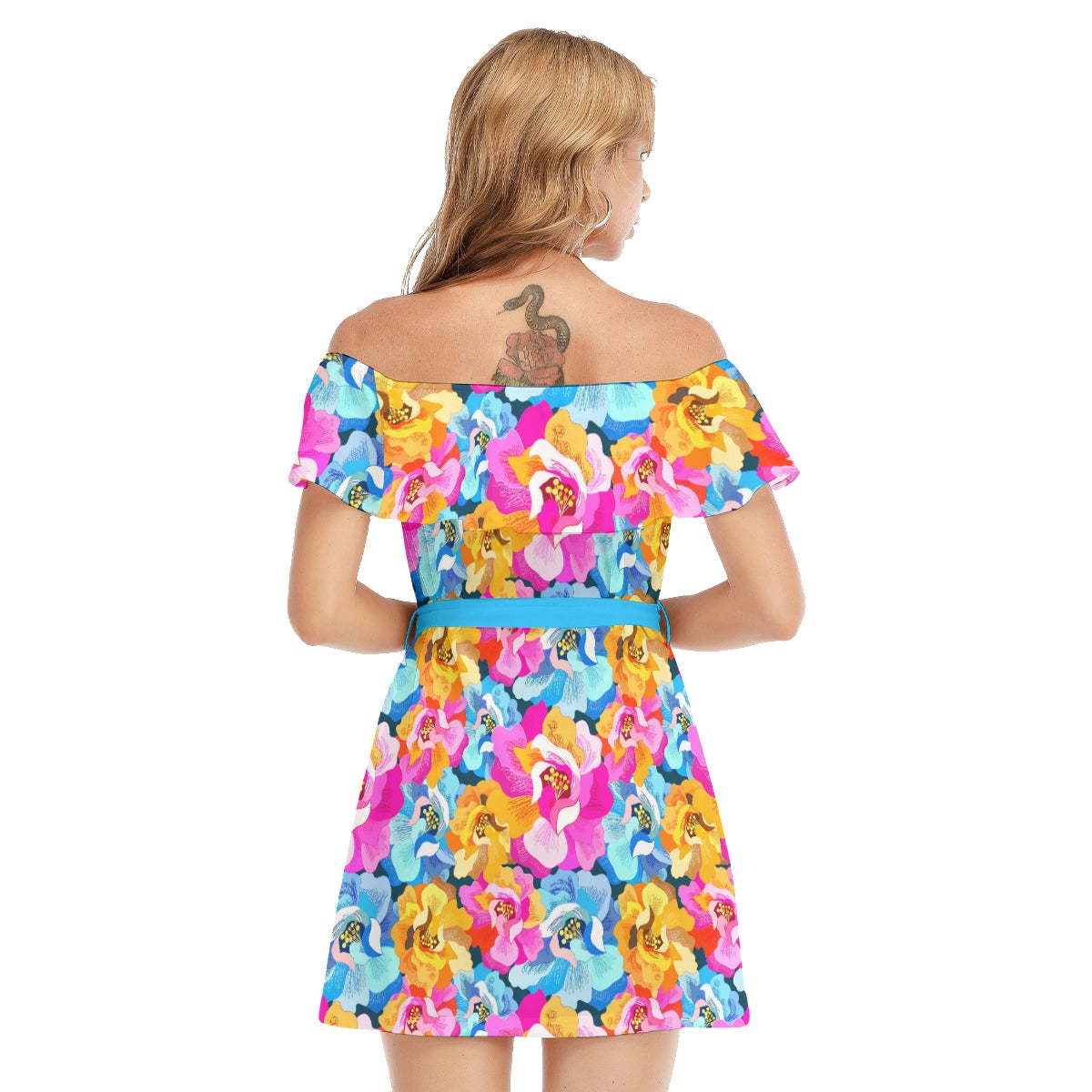 Summer Time Flowers Women's Off-shoulder Dress With Ruffle
